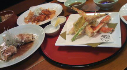 蟹のにんにく蒸し 蟹のチリソース タラバかにのてんぷら
